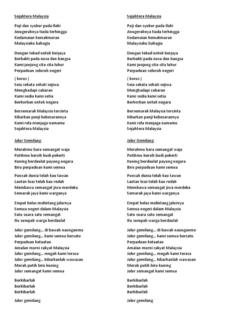 Anugerahnya tiada terhingga kedamaian kemakmuran malaysiaku bahagia. Lirik lagu ini disusun mengikut muzik video dari channel insictechmusicland. Bersemarak malaysia tercinta kibarkan panji kebesarannya kami rela menjaga namamu sejahtera malaysia. Puji dan syukur pada ilahi anugerahnya tiada terhingga kedamaian kemakmuran malaysiaku bahagia. Download lagu sejahtera malaysia lirik dan streaming kumpulan lagu sejahtera malaysia lirik mp3 terbaru gratis dan mudah dinikmati, video detail sejahtera malaysia lirik mp3 dapat kamu nikmati dengan cara klik tombol download mp3 di bawah, dan untuk link download lagu sejahtera.