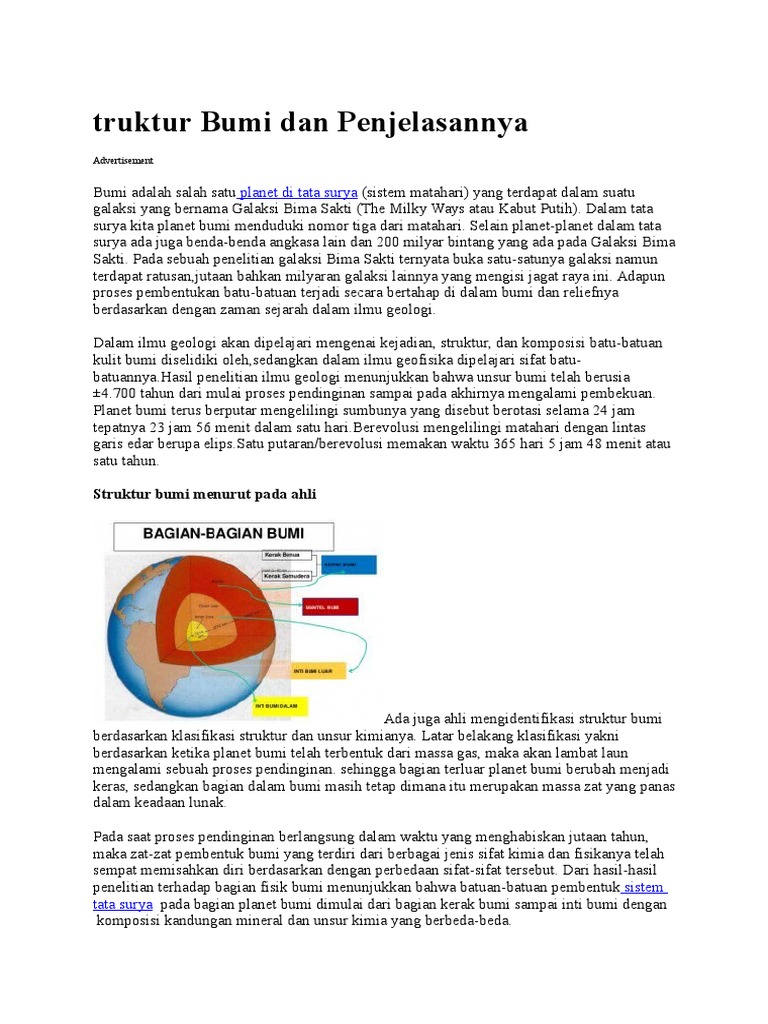 Sistem Bumi from imgv2-2-f.scribdassets.com Struktur bumi menurut para ahli. Sebelum mempelajari dan mengkaji tentang struktur bumi, terlebih dahulu yang harus kita pahami adalah palanet bumi itu sendiri. Hidrosfer umumnya tersusun dari lautan, yang mencakup 70% permukaan bumi! Selain memiliki struktur lapisan bumi kebawah, struktur bumi juga memiliki struktur lapisan keatas yang kita sebut dengan lapisan atmosfer bumi yang terdiri atas 5 lapisan yaitu. Sementara dua partai lainnya hanya sebagai alat pendamping agar tercipta citra sebagai negara demokrasi. Lapisan mantel terdiri daripada kompenen litosfera, astenosfera dan mesosfera. 1 komposisi dan struktur bumi bumi adalah sebuah planet kebumian, yang artinya terbuat dari batuan, berbeda dibandingkan gas raksasa seperti jupiter. Suhu yang terdapat pada astenosfer bagian luar ini mencapai struktur penyusun bumi ini mempunyai material besi dan nikel.