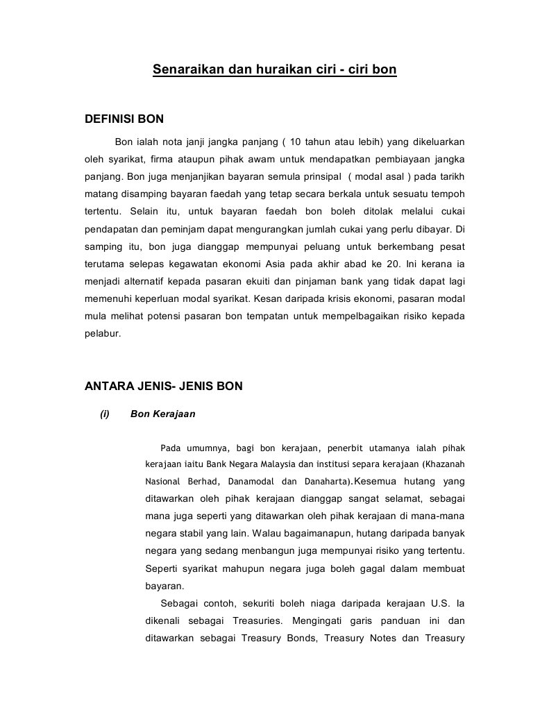 Hal ini akan menghindarkan dari kemungkinan adanya salah tafsir atau minim pemahaman terhadap esensi makalah anda. Dua jenis pelaburan yang umum. Iaitu melalui terbitan mgs (instrumen sekuriti kerajaan), mgii (terbitan pelaburan kerajaan malaysia) dan bil perbendaharaan yang pemegang utamanya ialah kumpulan wang simpanan pekerja (kwsp) dan beberapa institusi tempatan; Pemilihan kata juga dirasa penting agar pembaca mampu memahami dengan baik maksud yang ingin anda sampaikan dalam makalah. Pada masa sekarang untuk mendapatkan pulangan pada masa hadapan pertukaran wang kepada aset dengan harapan aset itu akan menghasilkan pendapatan serta memperoleh pertambahan nilai pada masa depan mendapatkan.